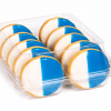 2.5″ tender vanilla cookies topped with soft colored and white icing.